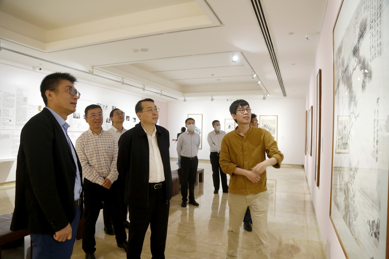 王强常委一行参观了正在展出的“何香凝美术馆馆藏特展——纪念何香凝逝世50周年暨何香凝美术馆开馆25周年展”,欣赏何香凝艺术精品的同时,也了解到美术馆25年来在公共文化服务、海内外文化交流、弘扬文化自信、培育爱国主义精神等方面所作贡献。王强常委提出,希望何香凝美术馆坚持专业性和特色化,在统战事业中发挥自身优势,与深圳市市委统战部加强联系,可通过市委统战部“同心鹏城”等宣传平台将优秀展览推广给更多的统战人士。